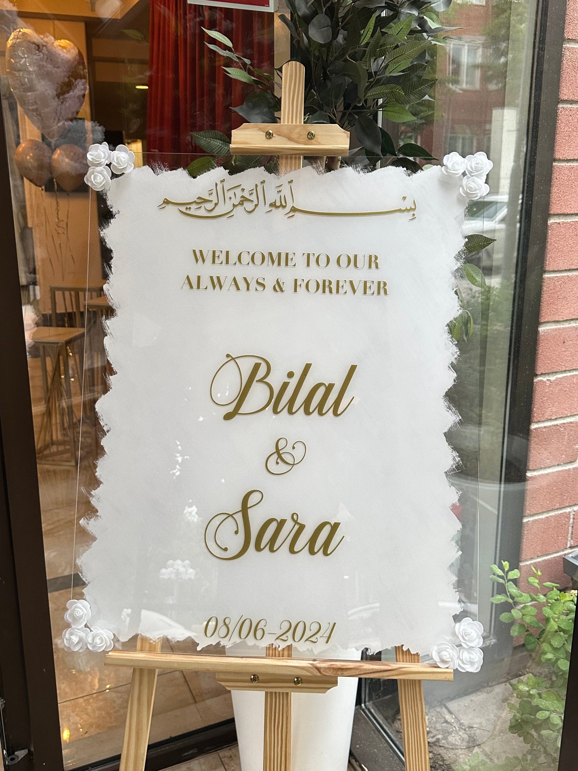 Skylt (stående) - "Welcome to our always and forever"